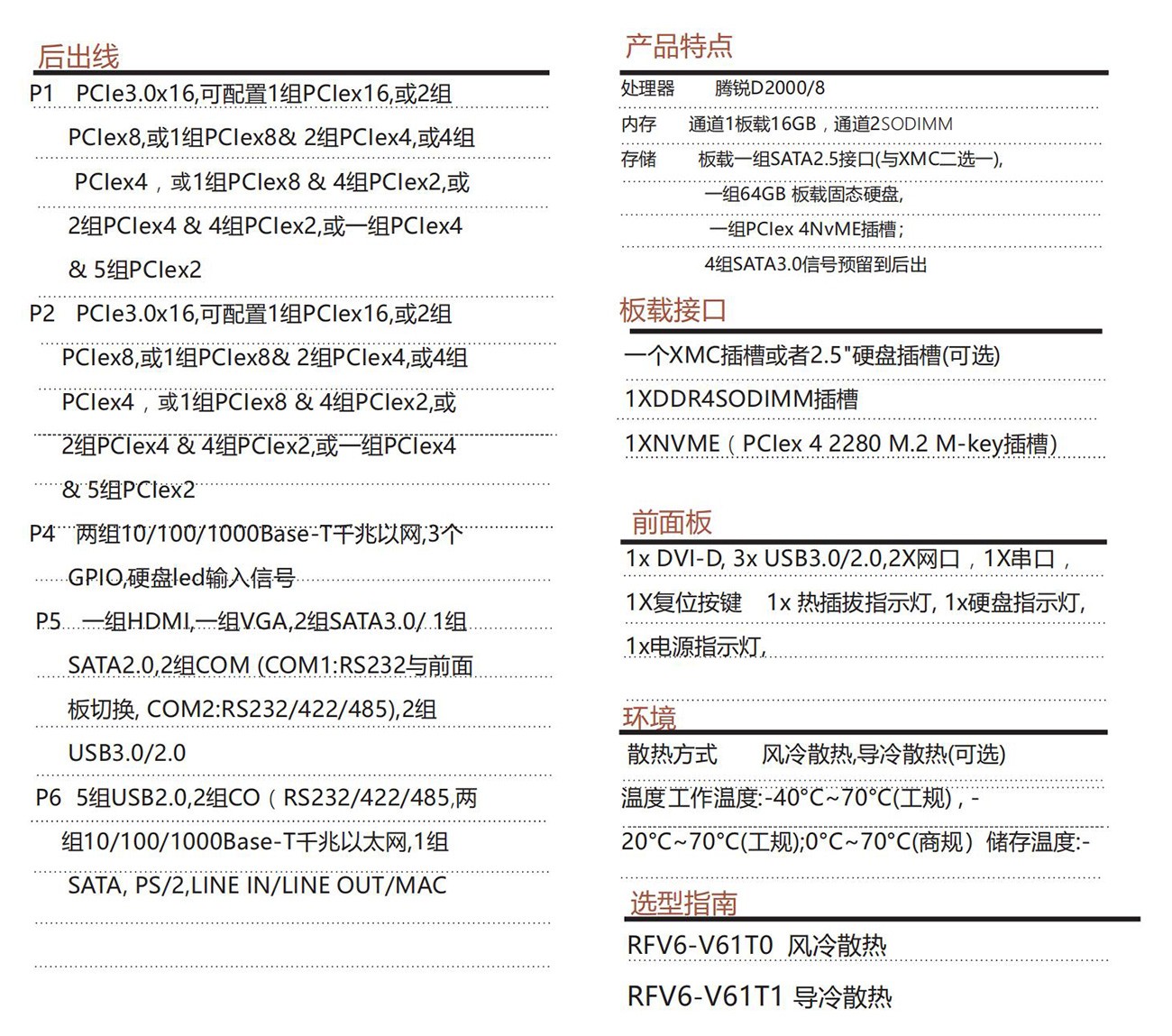 采用國產飛騰處理器FTD2000/8+ZX-200芯片 組按國產100%設計,VPX 結構兼容OpenVPX OpenVPX (VITA65),REDI (VITA48), 具 備 豐 富 的外圍接口;設計了高效的散熱系統,可顯著提高處理器的浮點運算性能,廣泛應用于軍事,滿 足視頻采集與處理、雷達和聲吶等應用對高速數 據傳輸的要求。滿足無人機、裝甲車、水面艦艇 等軍工領域